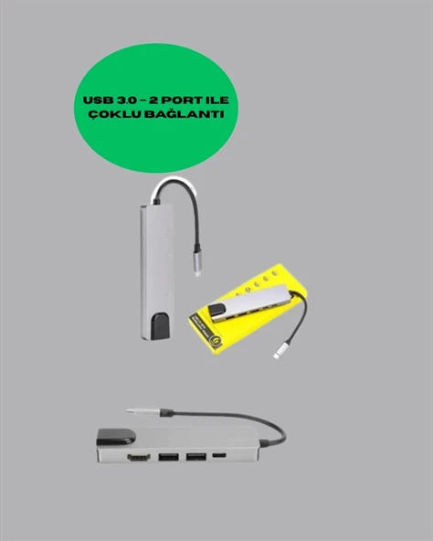 Usb Type-c Hub Dönüştürücü Çevirici Çoklayıcı Macbook Çevirici 8 Portlu
