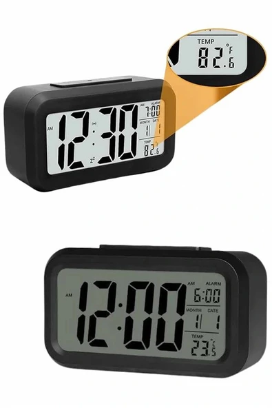 Dijital Masa Saati Termometreli Takvim Çalar Saat Led Ekran Pilli