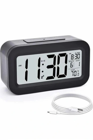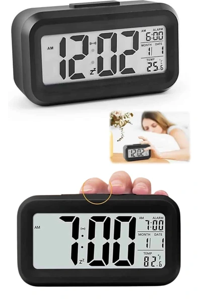 Işıklı Dereceli Masa Ofis Saati Alarmlı Termometre Takvim Çalar Saat