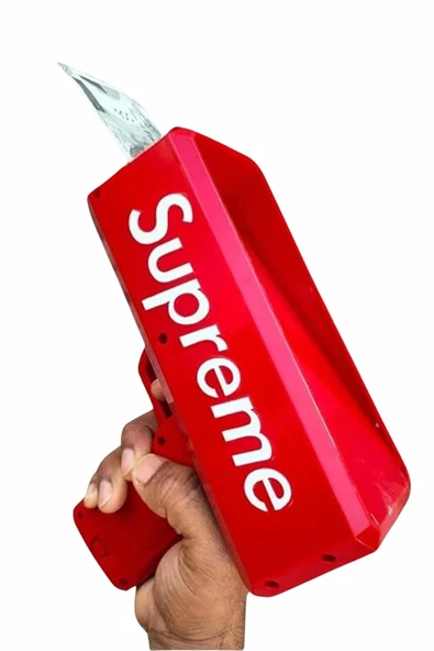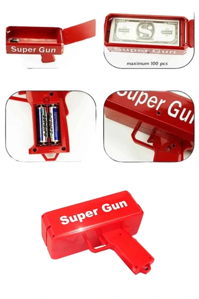 Kırmızı Parti Oyuncağı Para Saçma Fırlatma Tabancası Makinesi Super Money