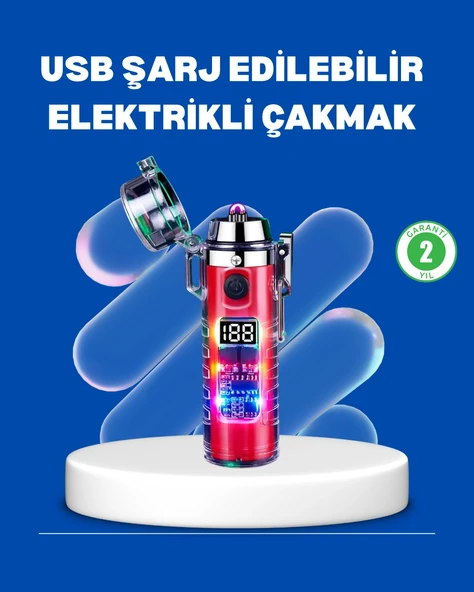 Güç Göstergeli Şarjlı Fenerli USB Elektrikli Çakmak