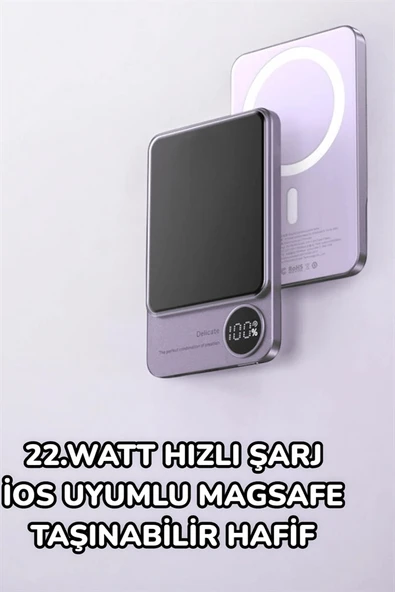 iOS Uyumlu 22.5W Hızlı Şarj Magsafe Powerbank Dijital Göstergeli 10.000 mAh