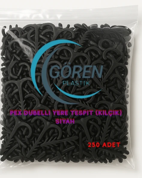Pex Dubelli Yere Tespit Kılçık Siyah (250'li Paket) - Yerden Isıtma Boru Sabitleme Aparatı