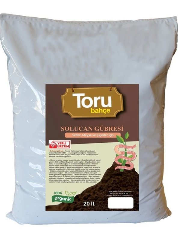 Toru Bahçe Solucan Gübresi 20 lt (10kg)Toprak Düzenleyici Solucan Gübresi