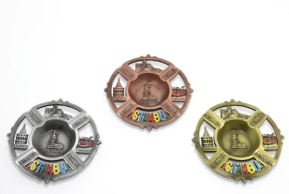 İstanbul Temalı Yöresel Metal Küllük Yuvarlak