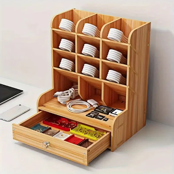 Bölmeli ve Çekmeceli Ahşap Organizer