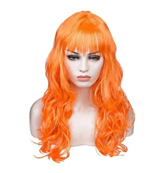 Turuncu Renk Astarlı Dalgalı Kesim Parti Peruğu