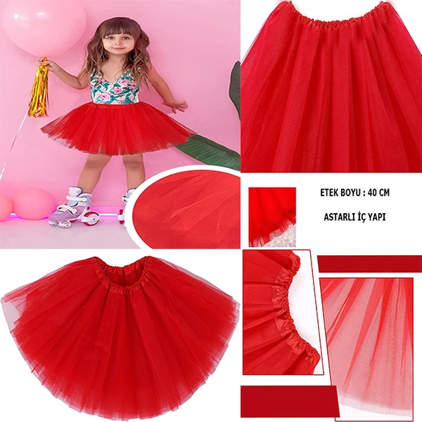 Kırmızı Renk Tütü Etek Çocuk Bebek Boy