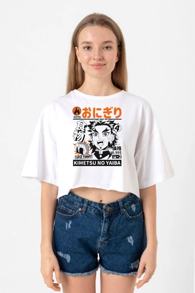 Demon Slayer Anime Super Yummy Beyaz Kadın Crop Tshirt