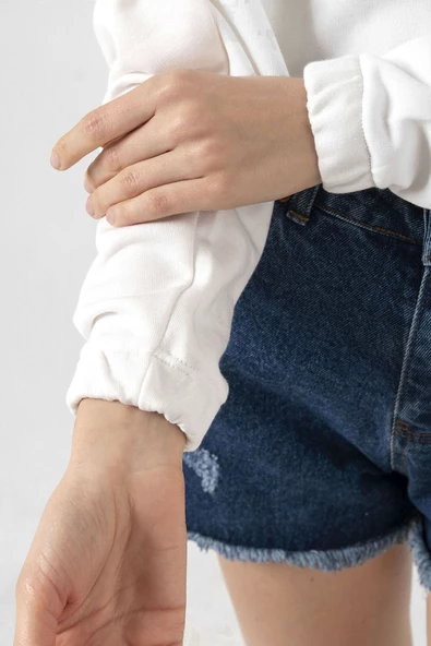 Indiana Jones Lao Che Air Freight Beyaz Optik Kadın Crop Kapşonlu