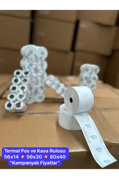 56x14 Termal Rulo - Yazarkasa Pos Rulosu 50 Paket 500 Adet