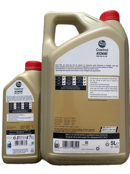 Castrol EDGE 0W-20 LL IV Tam Sentetik Motor Yağı (5L+1L) 6L - 2025