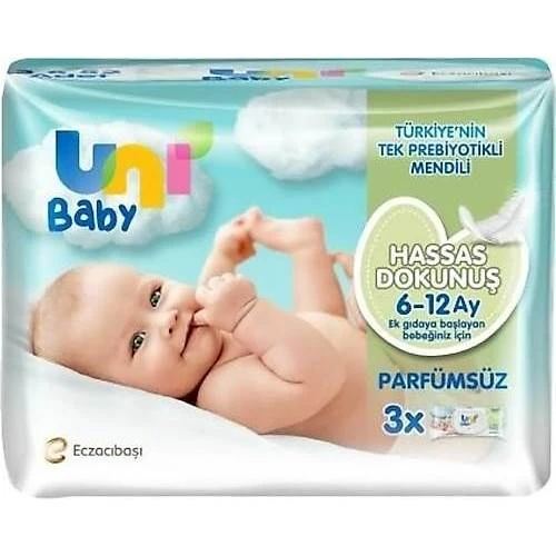 Uni Baby Hassas Dokunuş 6-12 Ay Islak Mendil 52 Yaprak - 3 Adet