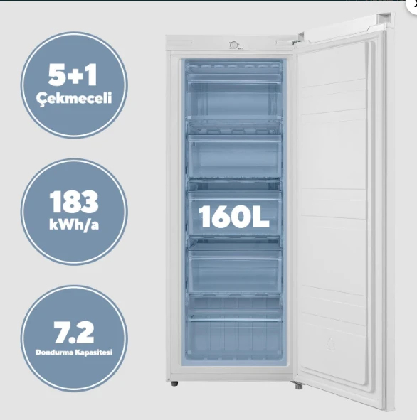 KUMTEL 5 Çekmeceli Dikey Derin Dondurucu 160L HFR-160