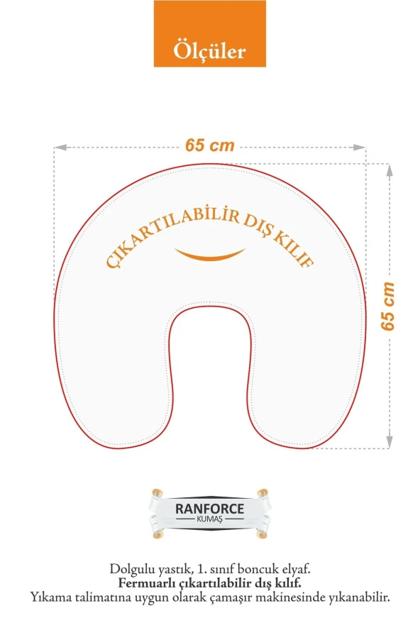Umaybebek Emzirme Yastığı Minderi, Pamuk Kumaş - Dolgulu Yastık 60x60 Cm-Beyaz Dokuluİndirimli ürün255,02 TL