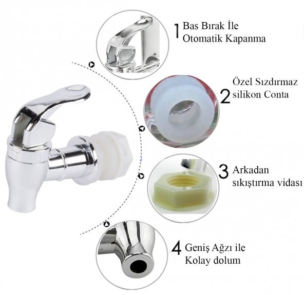 Cam Sebil Damacana Yedek Musluğu Basmalı ve Çevirmeli