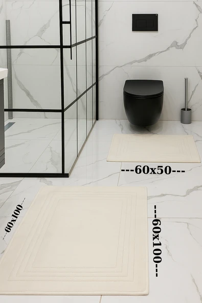 KREM RENGİ %100 Pamuk Dokuma, Su Emici, Banyo Paspas Seti, Banyo Halısı Vera 2'li Klozet Takım 60x100-60x50
