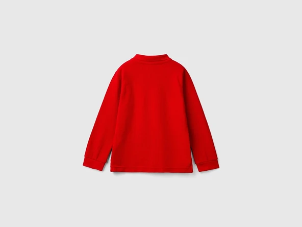 Erkek Bebek Kırmızı Logolu Uzun Kol Polo T-Shirt %100 PAMUK