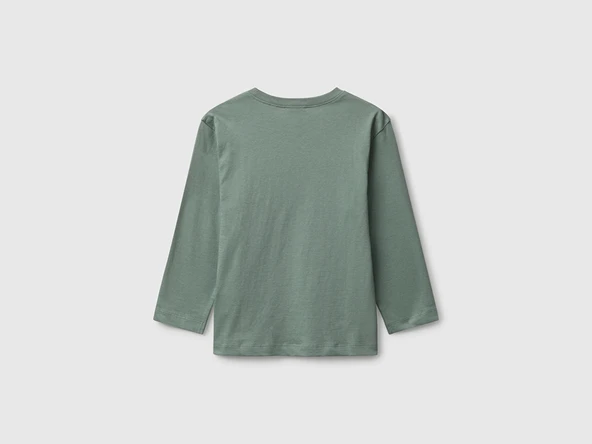 Erkek Çocuk Fıstık Yeşili Benetton Logo Baskılı Uzun Kollu T-Shirt