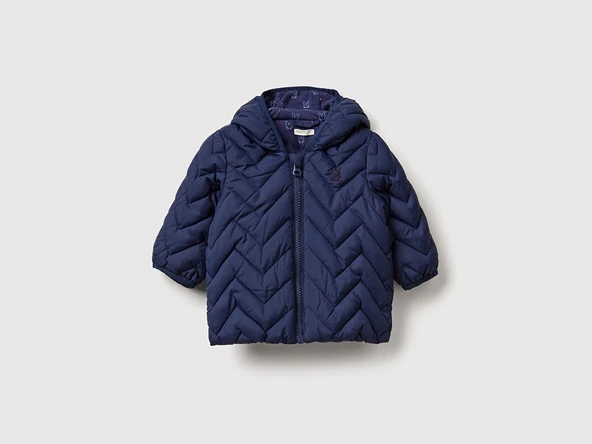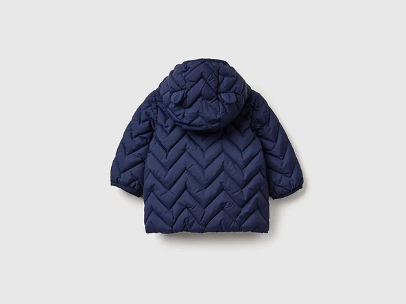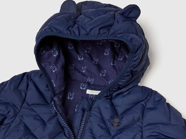 Bebek Lacivert Zikzak Dikişli Tavşan Kulak Kapüşonlu Mevsimlik İnce Mont