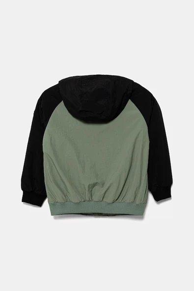 Erkek Çocuk Haki Kolu Logo Detaylı Astarlı Kapüşonlu Yağmurluk