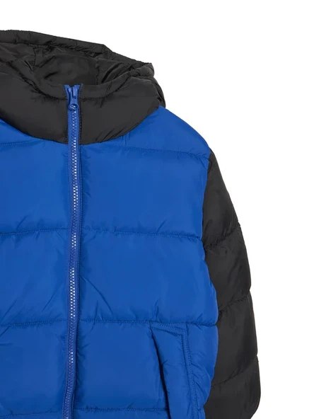 Erkek Çocuk Mavi Logo İşlemeli Kalın Mont