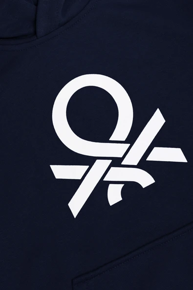 Erkek Çocuk Lacivert Önü Logo Baskılı Fermuarlı Kapüşonlu Sweatshirt