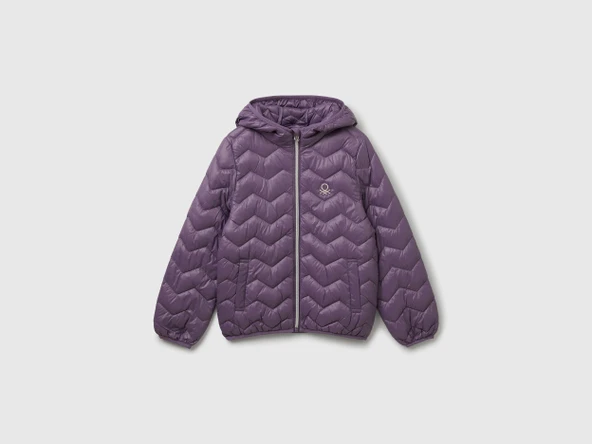 Kız Çocuk Mor Simli Logo Detaylı Kapüşonlu Mevsimlik İnce Mont
