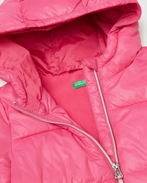Kız Bebek Logo İşlemeli Kapüşonlu Mont