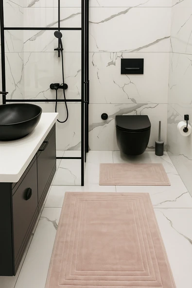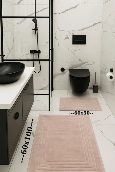 %100 Pamuk Dokuma, Su Emici, Banyo Paspas Seti, Banyo Halısı Vera 2'li Klozet Takım 60x100-60x50