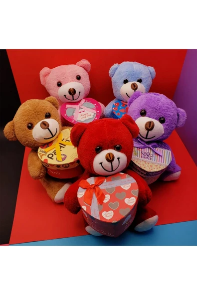 Dolunay STORE Kalp Hediye Kutulu Ayıcık - Kırmızı