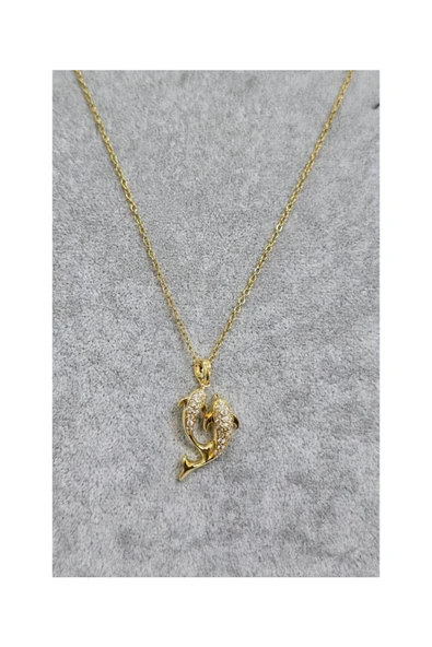 Vipfoni Zirkon Taşlı Çift Yunus Balığı Çelik Kolye