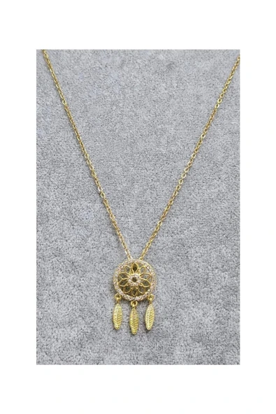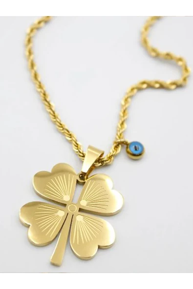 Vipfoni Çelik Gold Renk Burgu Zincir 4 Yapraklı Yonca Kolye