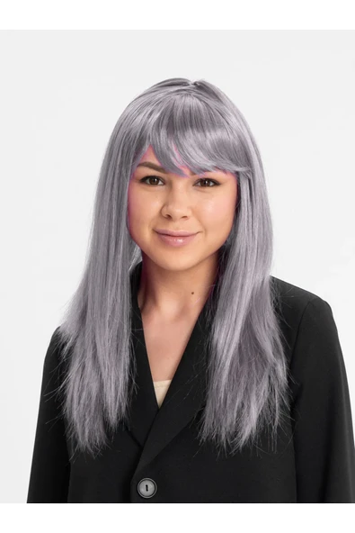Vipfoni Platin Gri Gümüş Renk Uzun Parti Peruğu Uzun Peruk