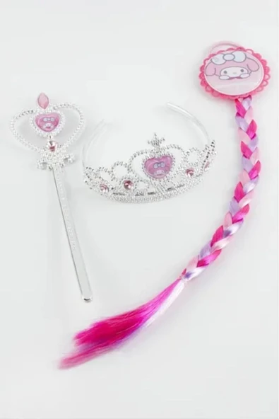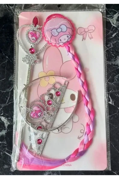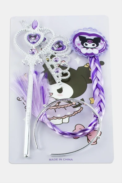 Vipfoni Kuromi Örgü Saç Taç Asa Seti