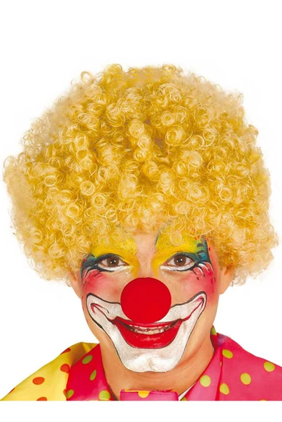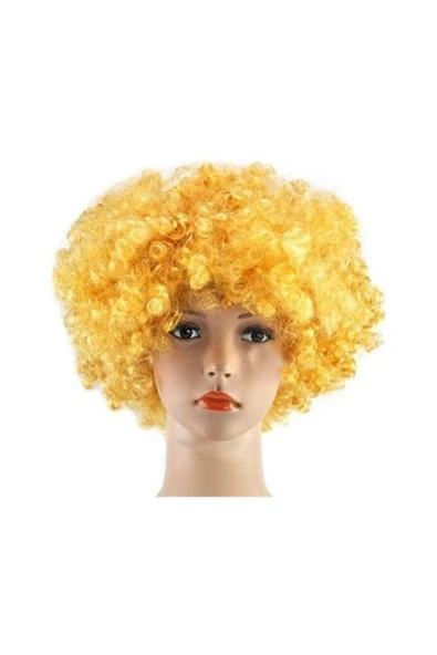 Vipfoni Kıvırcık Afro Bonus Peruk Takma Saç ve Kırmızı Burun Seti - Sarı