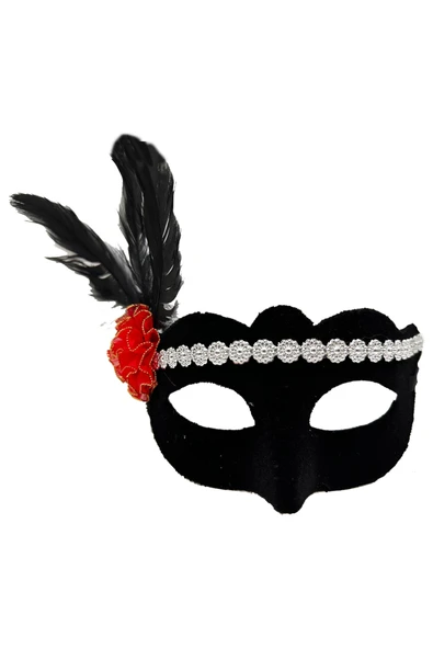 Vipfoni Yandan Tüylü Güllü Taşlı Pullu Maske 20x22 cm