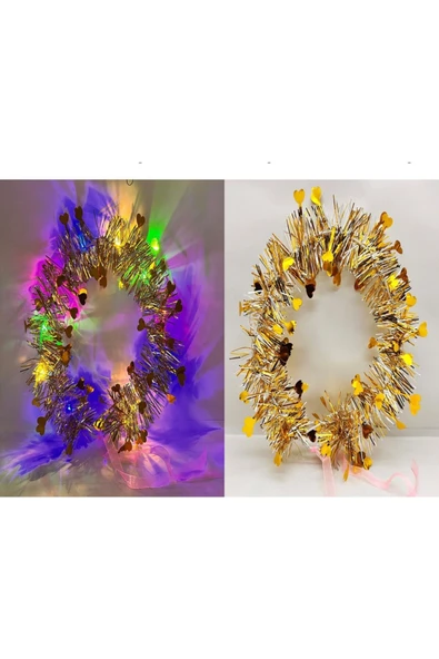 Vipfoni Kalp Püsküllü Gece Parıltısı 3 Modlu LED'li Işıklı Taç Gold