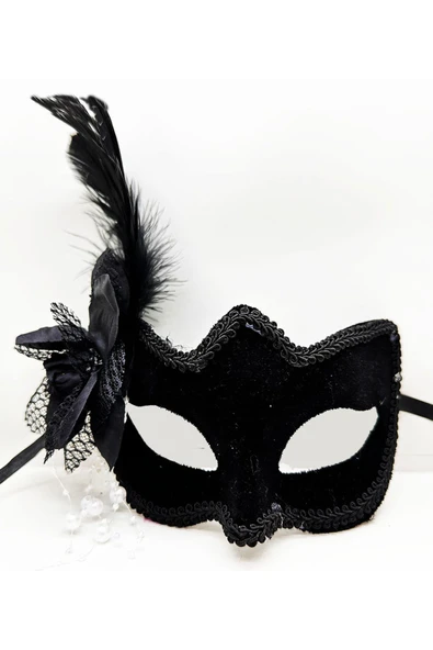Vipfoni Siyah Renk Yandan Tüylü Dantel Parti Maskesi 20x20 Cm