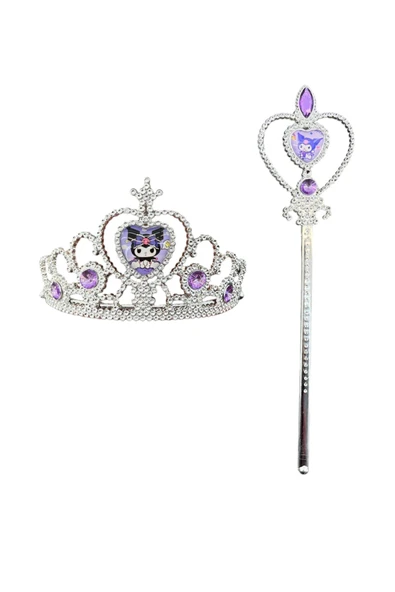 Vipfoni Kuromi Kraliçe Örgü Saç Taç Asa Seti