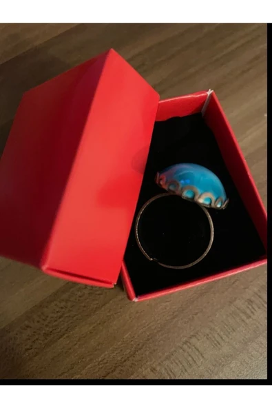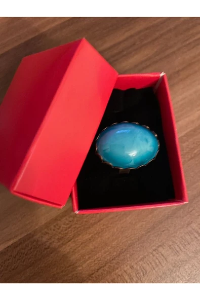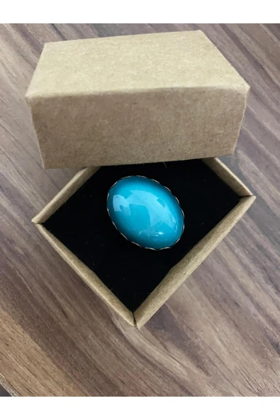 Vipfoni Turkuaz Taşlı Gümüş Renk Oval Büyük Doğal Taş Yüzük El Yapımı