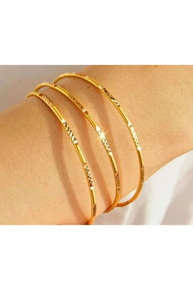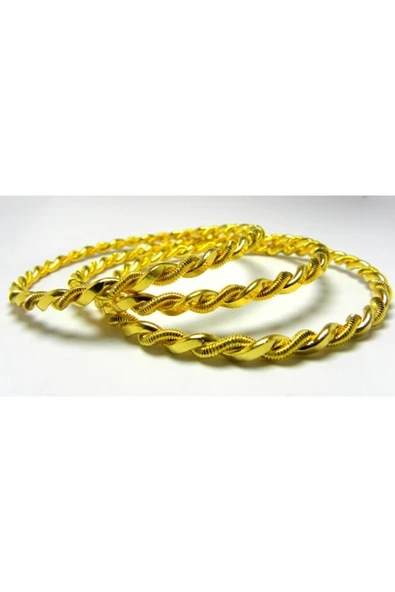 Vipfoni Altın Kaplama 3 Burmalı Kalın Adana Burma Bilezik 2 Adet