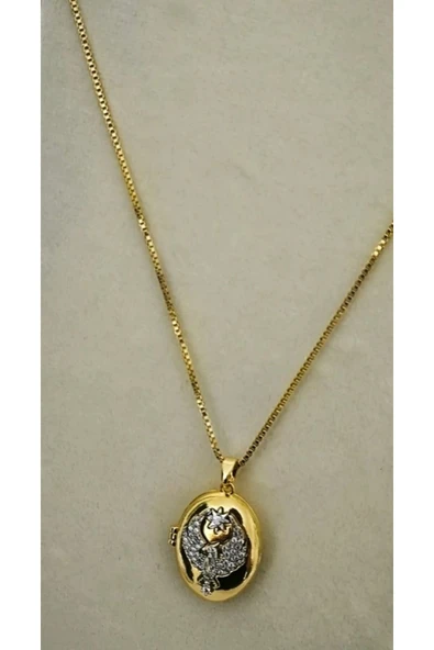 Vipfoni Anka Kuşu Açılabilir Zirkon Taşlı Çelik Madalyon Kolye