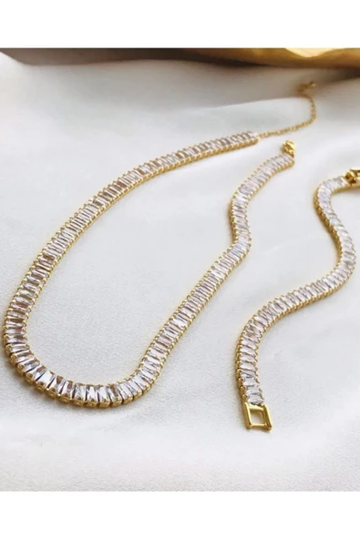 Vipfoni Çelik Zirkon Taşlı Baget Su Yolu Bileklik Kolye Set