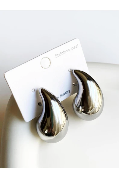 Look Like Italyan Damla Çelik Küpe - 3cm Boy - Silver