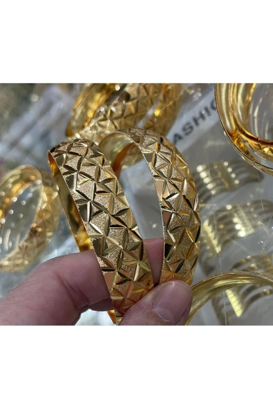 Vipfoni Altın Kaplama Yatay Çizgi Model Bilezik (2 cm Genişlik) 1 Adet
