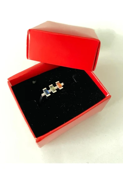 Vipfoni Renkli Baget Taşlı Gümüş Kaplama Yüzük