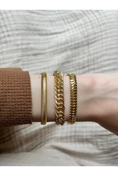 Vipfoni Gold Renk Zincir 3 lü Bileklik Seti - MGLD5