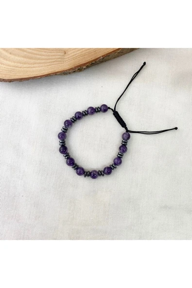 Vipfoni 8 MM Ametist - Hematit Taşı Makrome Örgülü Dogal Taş Bileklik