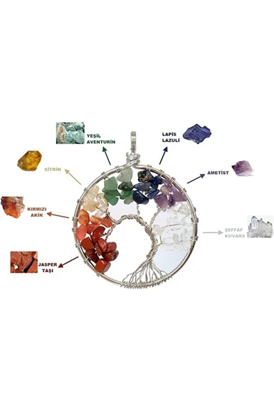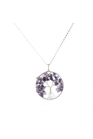 Vipfoni Tel Sarmalı Çakra Hayat Ağacı Doğal Ametist Taşı Kolye (zincir Dahil)
